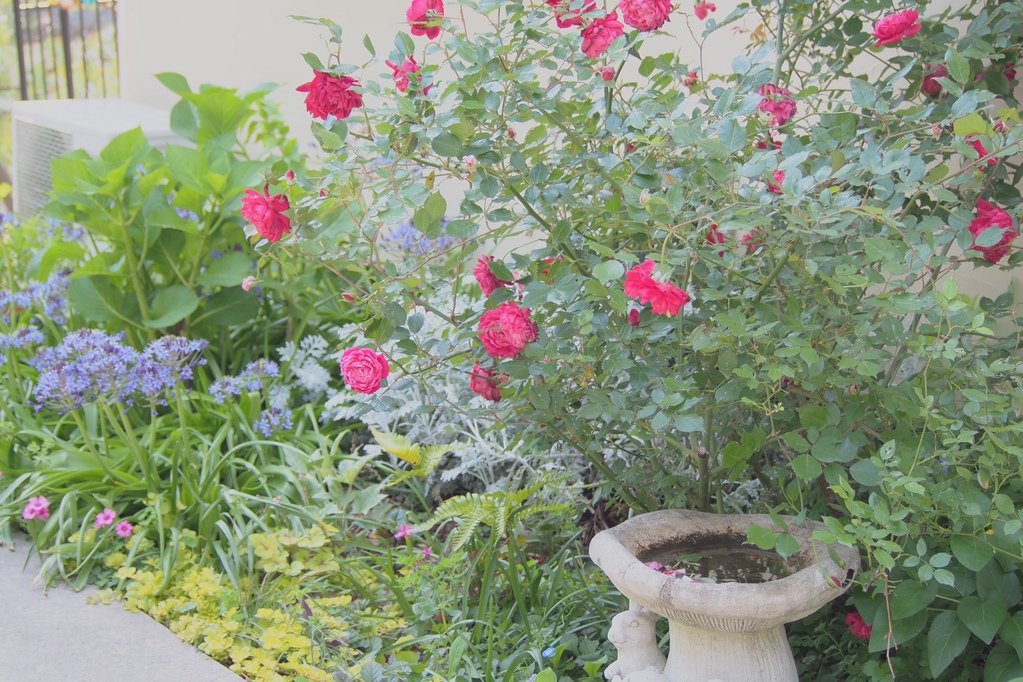 お隣さんから枝を貰って挿し木した、品種不明のバラです。