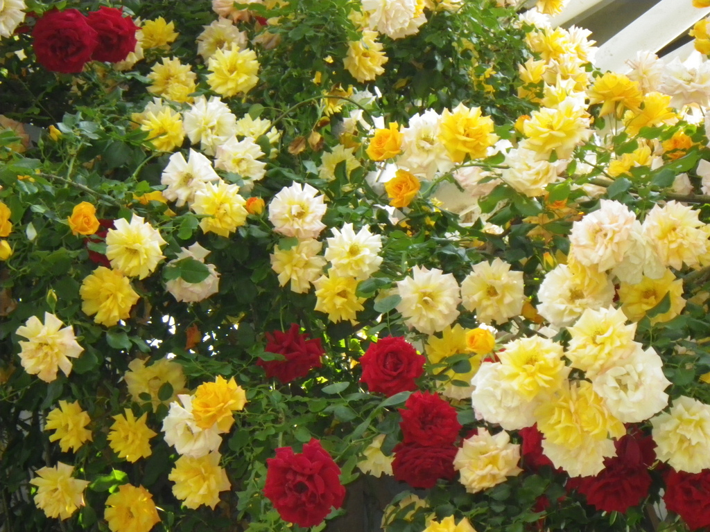 豪雪地岩見沢市の温室のバラです。 長い冬を堪えて温室の天井近くまで登るバラたちは育だてた方たちの情熱のたまものです。