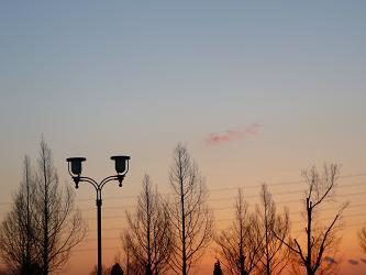 わたしも絶対電線あって正解だと思います。電線と木々と街灯と夕焼け、どれも必要不可欠です!絵葉書のようにきれいで文句なく☆三つです!