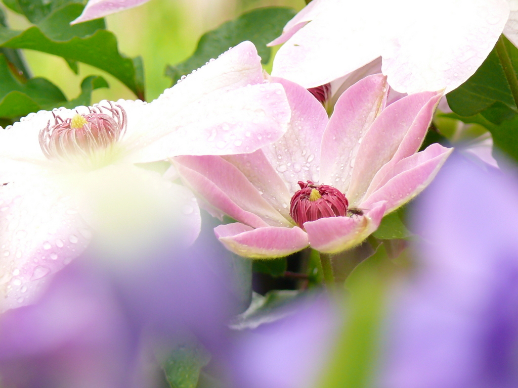 優しいですね~(^^♪テッセン?クレマチス?雨上がりでしょうか。。。素敵な瞬間のフォトでいらっしゃいます❤