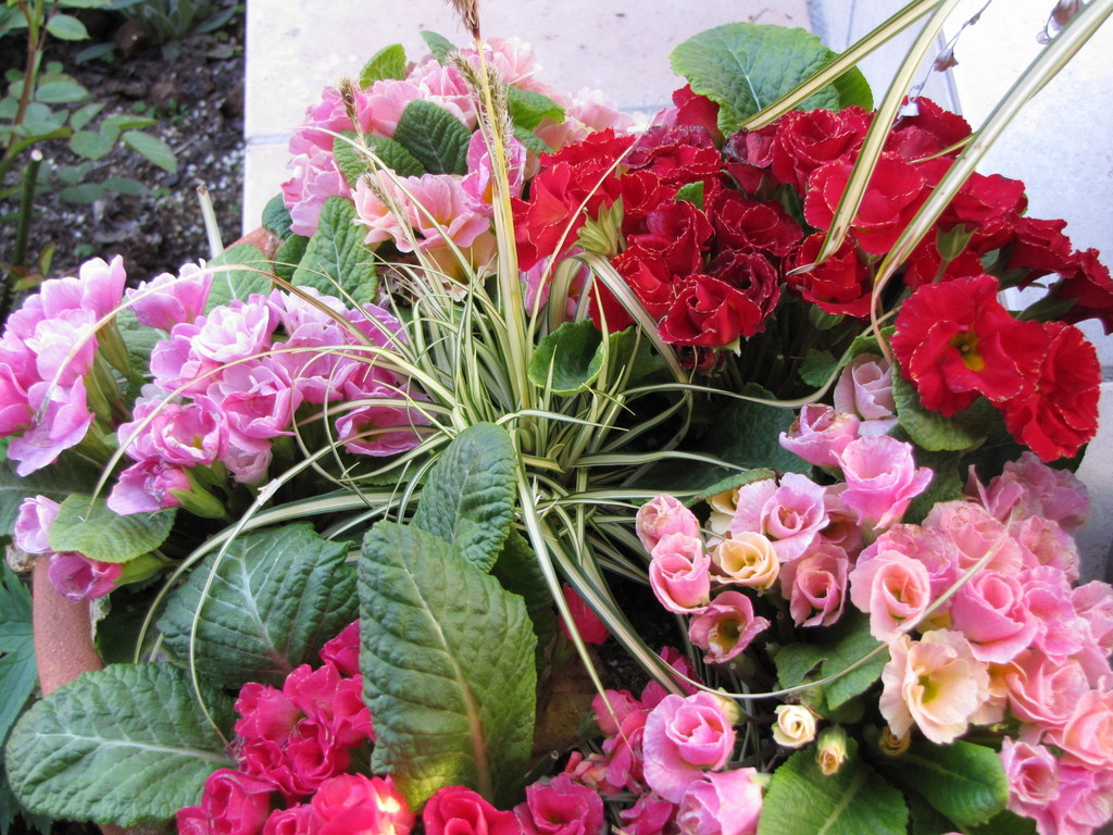 真ん中はオリズルランかな~?きれいな寄せ植えですね。