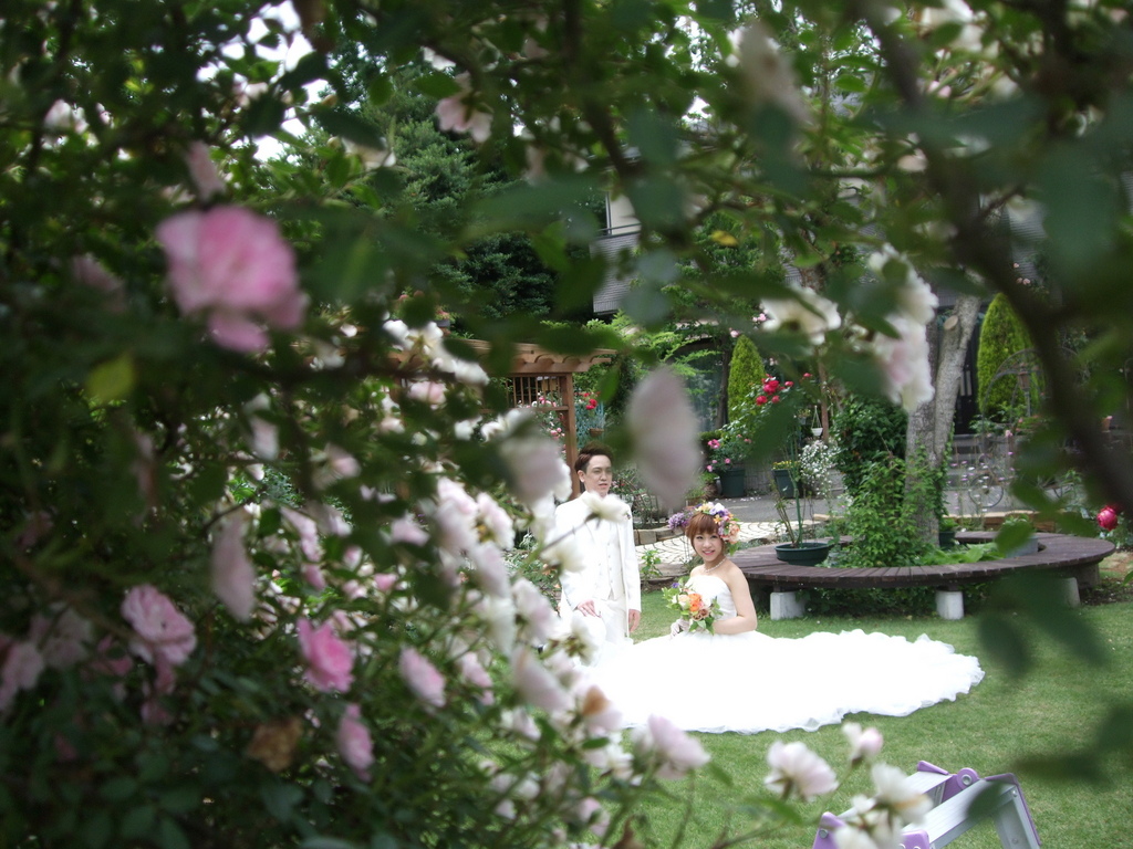 素敵なお庭で記念写真、お幸せをお祈りします。