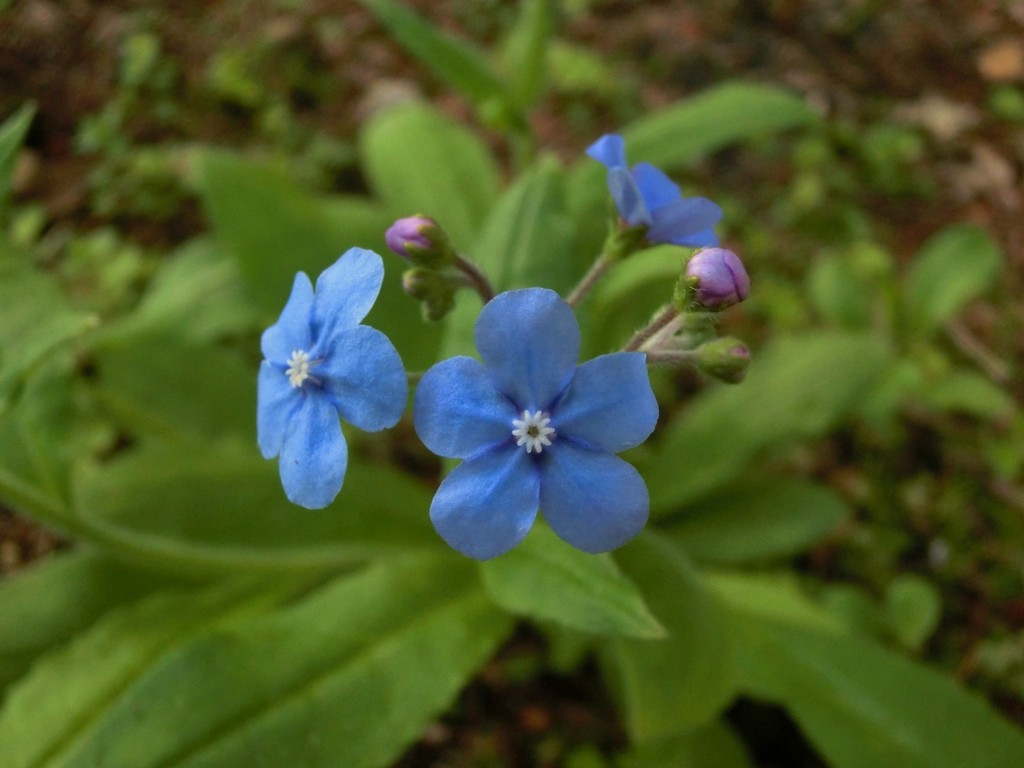 以前に空き地の林の中で見つけたのを庭に移植したのですが、毎年春になると芽を出して勿忘草の花を大きくしたような可愛い花が咲きます。花の直径は1cm位でアンチューサにも似ています。