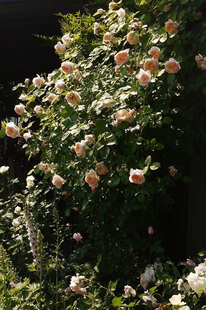 あまりに暑くて、いつもよりバラの開花が早まっています。ジェーン・オースチンもこんなに咲いてしまいました。暑そうでしょ~~(^^ゞ