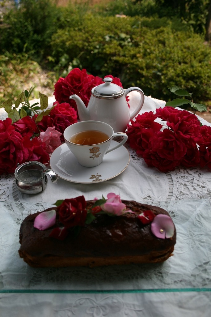 満開に咲いた我が家の紅いつるバラ と、ティーフォーミー