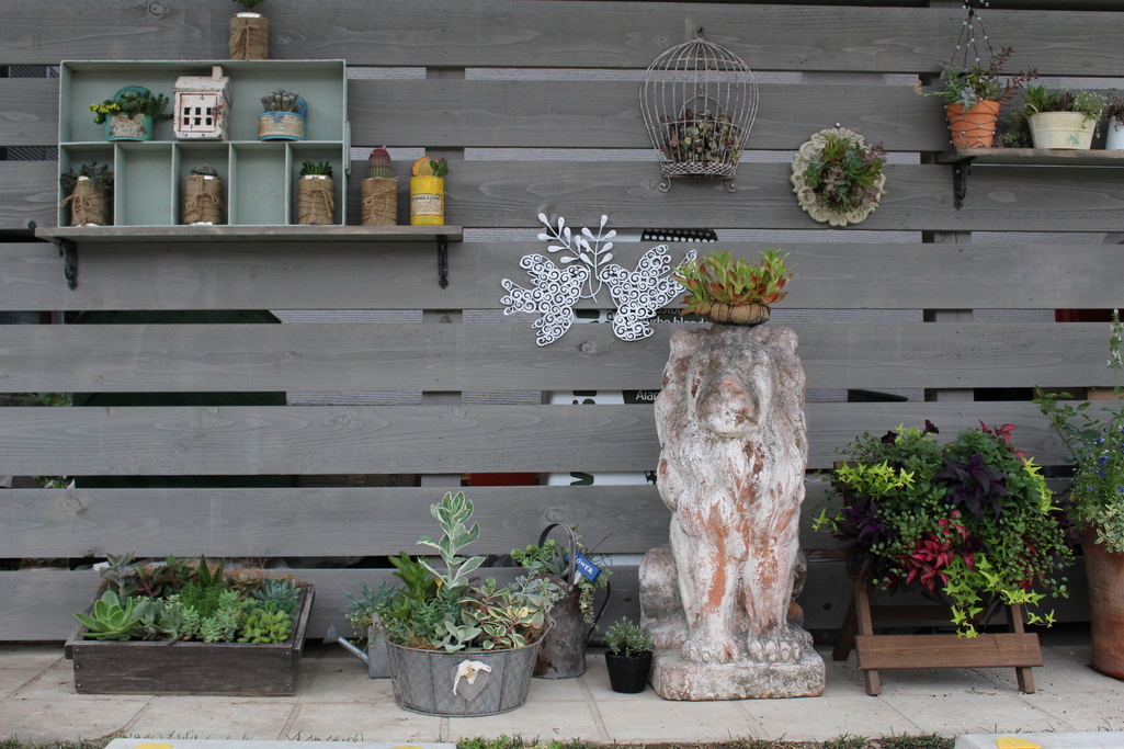 カーポートの奥に作った壁ディスプレイコーナーです。
