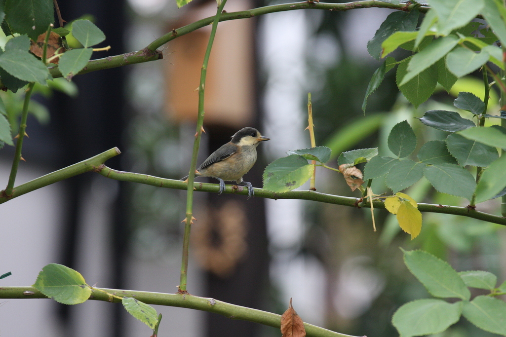 ご近所さんの家からヤマガラの雛が今朝巣立ちました。 私が姿を見たのは一羽だけ。 この後うちの庭にも来てくれました。