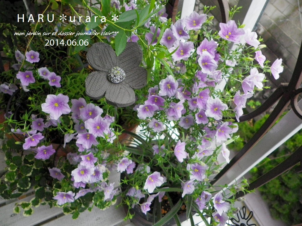 2年目のニーレンベルギアが溢れ咲き。益子陶器市で買ったお花のガーデンピックがお似合いです^^