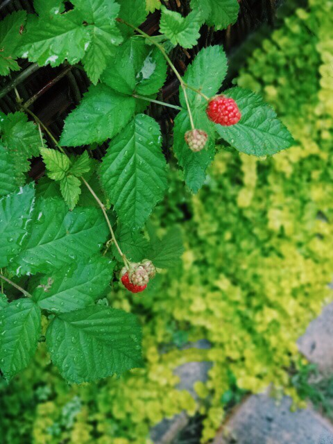 黄色の絨毯に、色づいたブラックベリーの赤がアクセントでかわいい^^