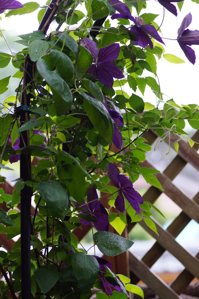 バラに主役をとられていたアーチも、今はクレマチスが主役^^ マダムグランジェです。(雨降りなので、お部屋からの撮影)