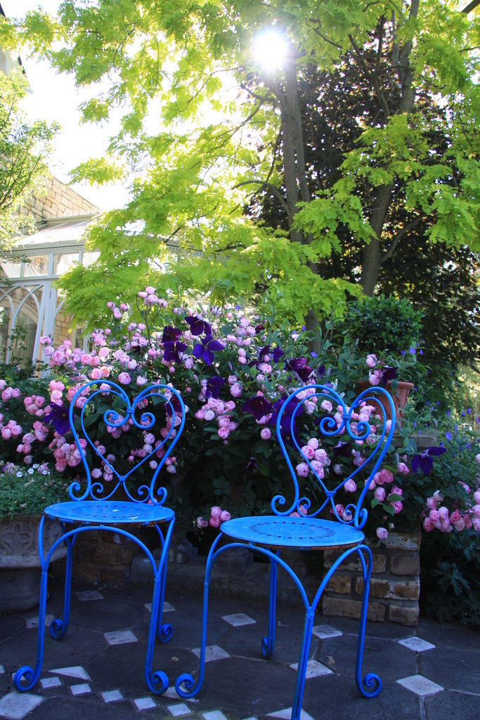 鮮やかな色の椅子が、お庭にとってもよく似合ってますね!