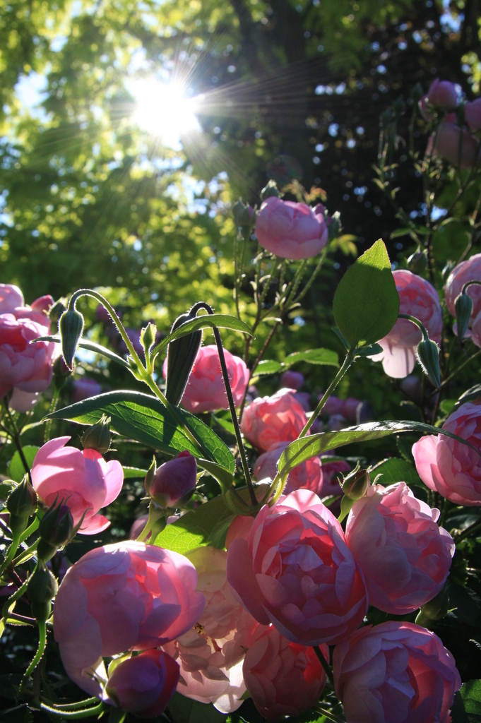 バラの花びらに朝日が透ける感じがよく出ていますね。