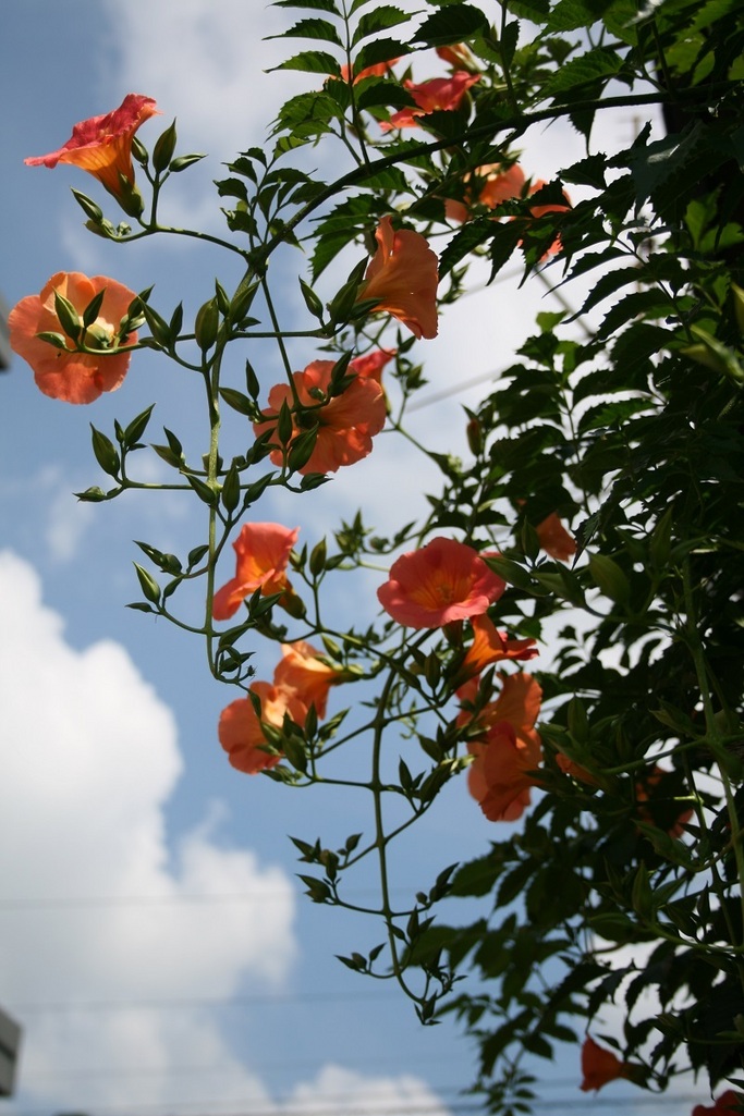 ノウゼンカズラが,夏の訪れを告げま すが、今年は梅雨明けが早いのでしょ うか?