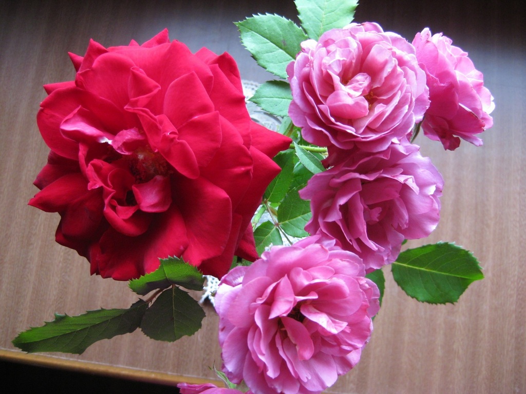 名前がわからない大きなバラとあおい 切り花にしても長持ちしてます^^