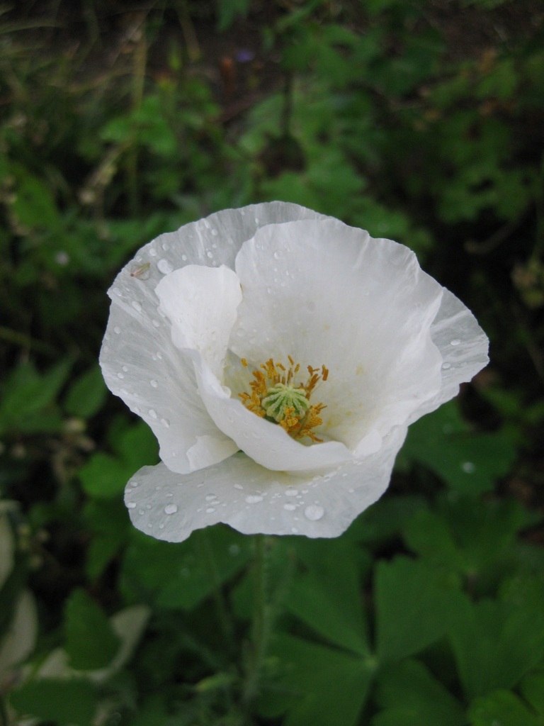 白のポピーが雨に濡れて、ころんとした滴がいとおしい