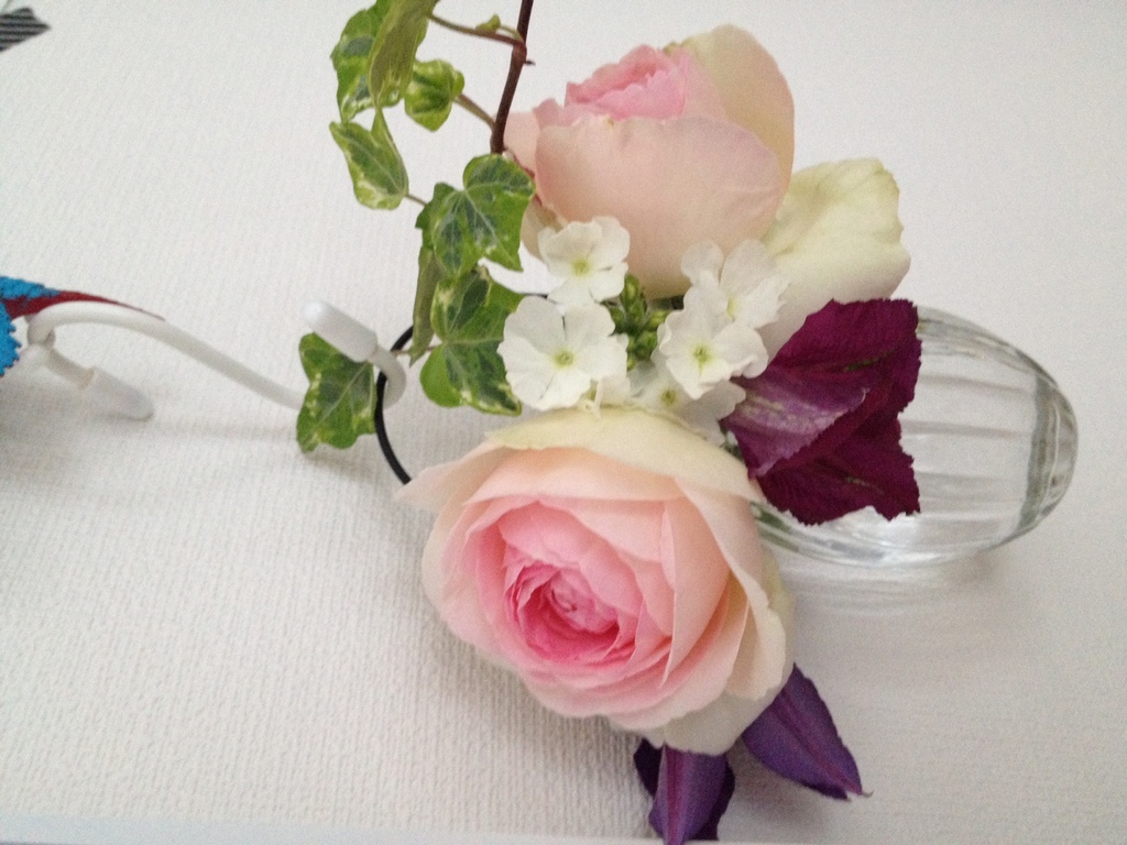 庭のお花をつんで飾ってみました。
