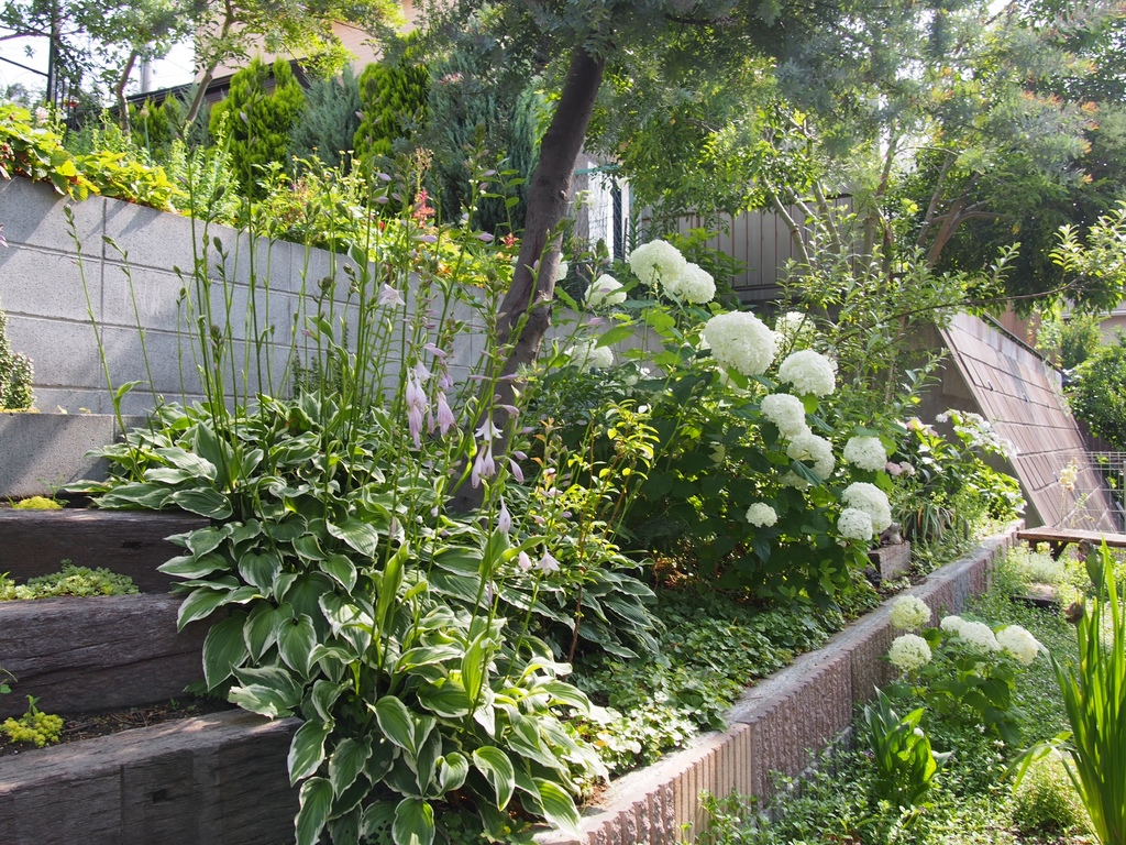 アナベルとギボウシ