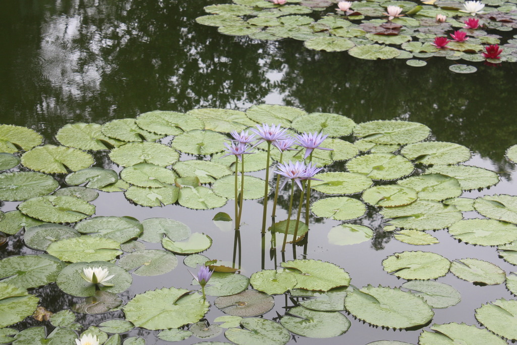 モネがジヴェルニーの庭で咲かせようとして咲かなかった青い睡蓮が高知のモネの庭ではきれいに咲いていました。