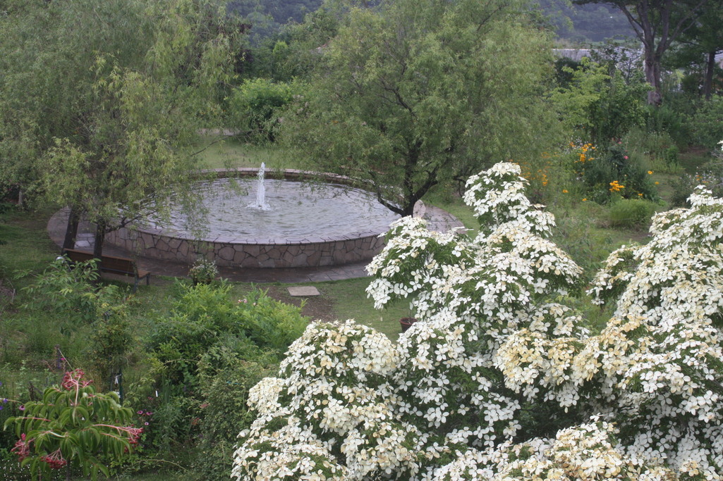 花の庭のシンボルツリーのやまぼうしが満開で、白い花が見事でした。