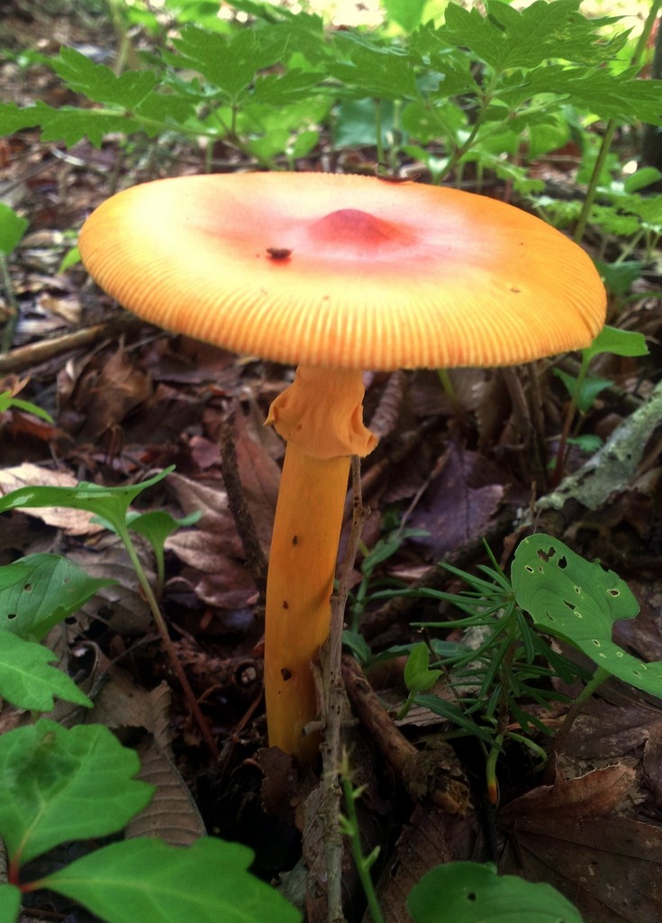 梅雨明けにはまだですが、雨上りの庭でいろんなキノコが顔を出しています。これは定番のタマゴタケ。とてもきれいなキノコですが美味しい食用キノコです。