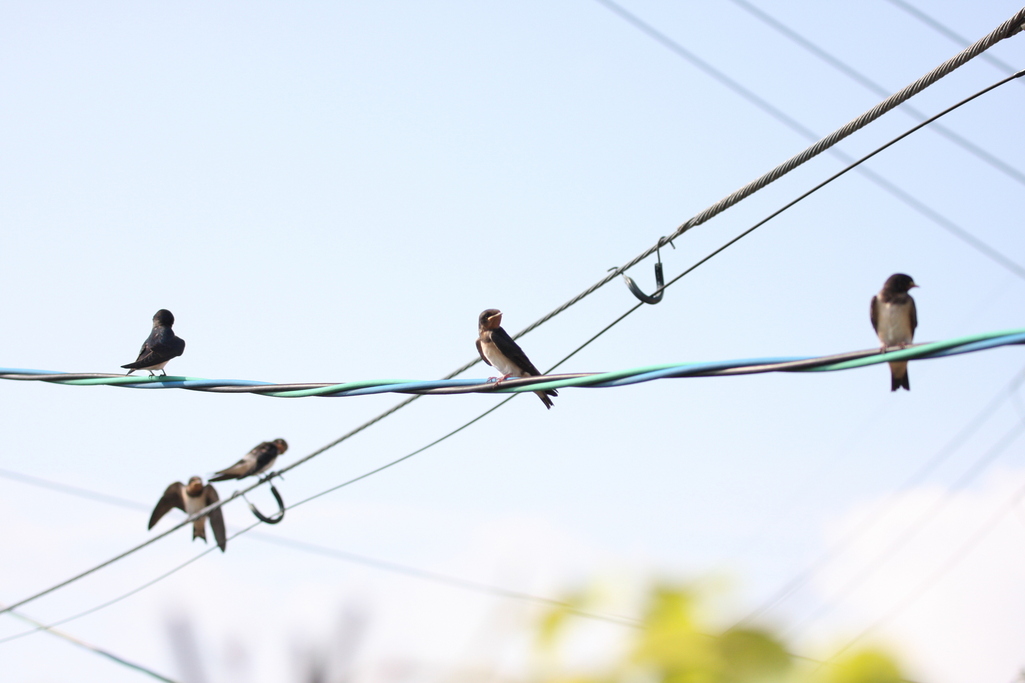 ツバメの兄弟達です。飛び回る雛もいれば、じっと動かない雛も。。それぞれですね。夏の終わりには南に飛んで行かなければならないね。しっかり食べとくんだよ。