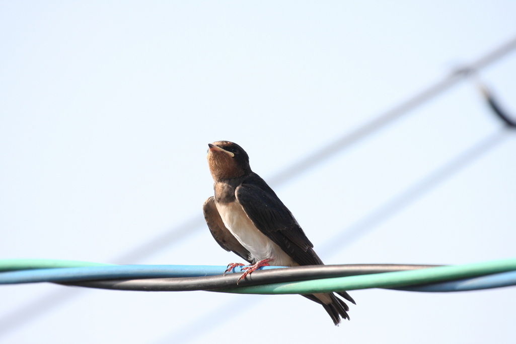 親を一生懸命待っています。つぶらな瞳が可愛い。まだまだ飛ぶのもおぼつかなくて、思う場所に飛べない様子で、電線に止まる時も「おっとっとっ」って感じです。