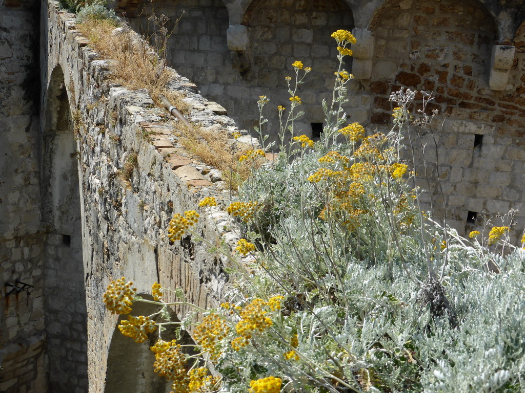 城壁の天然ロックガーデン。シロタエギク。