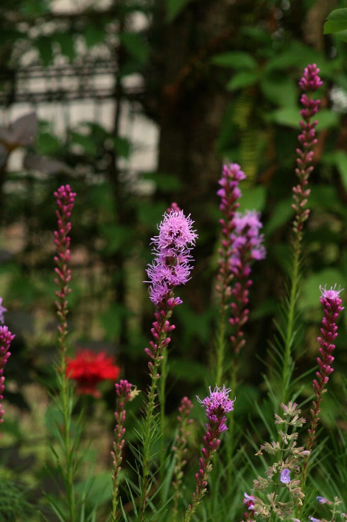 宿根草のリヤトリス、毎年必ずこの時期にたくさんの花を咲かせてくれます。チョウや蜂たちが大好きな花です。