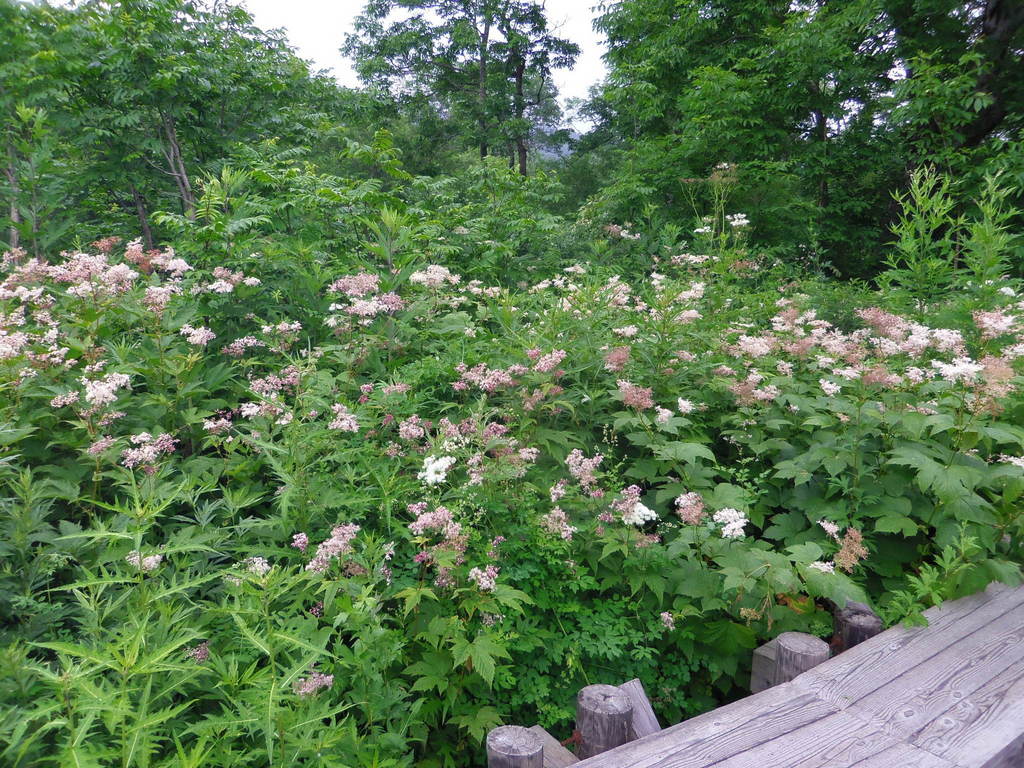 場所によって群落の種類が変わります。ここはシモツケ。