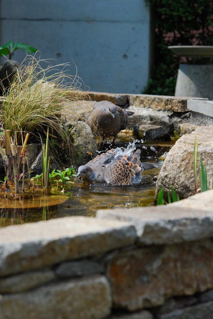 我が家にも、餌台からこぼれた餌を食べたり、石の階段にたまった水を飲みにやって来ます。