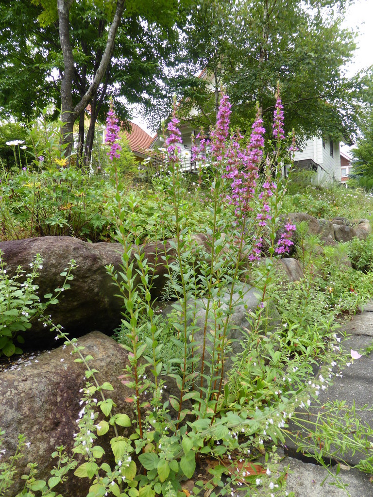ミソハギ?こんな所(道路と石の間)に 咲いてくれました。ありがとう・・・