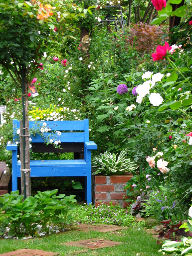 綺麗なブルーですね。お庭のところどころに顔を見せる綺麗なブルーで一段とお庭が輝いてみえます。素敵なブルーとお庭ですね。お花もとっても、あっていますね。素敵!