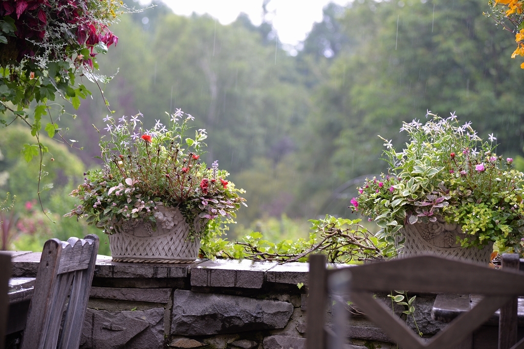雨の中テラスからしっとりと:::