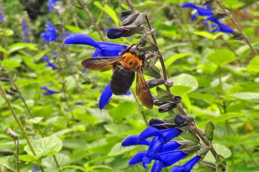 花の蜜を求めていろんな昆虫が集まってきます・・ マルハナバチ