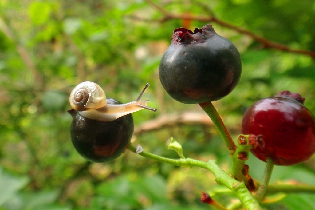 今朝の涼しいうちにブルーベリーの収穫をしていたら、小粒の実の上に可愛いお客さまが・・・ ブルーベリーの収穫もそろそろ終わりに近づいて、不順な夏にも関わらず昨年並みの十数キロも実り、自然に感謝です・・・