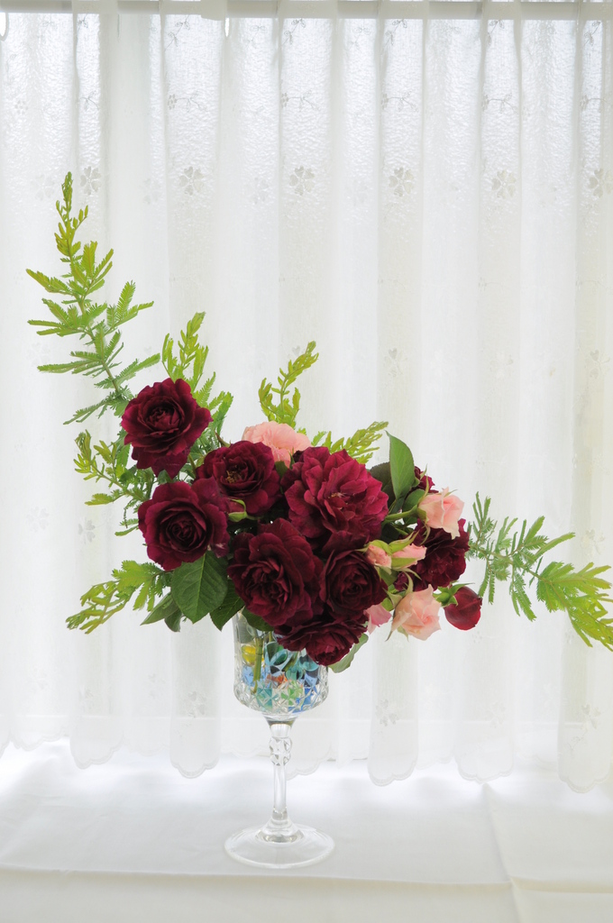記念すべき素敵な一枚ですね!深みのある赤紫のトラディスカントのアレンジ、いいですね~美しいお写真これからも楽しみにしています。
