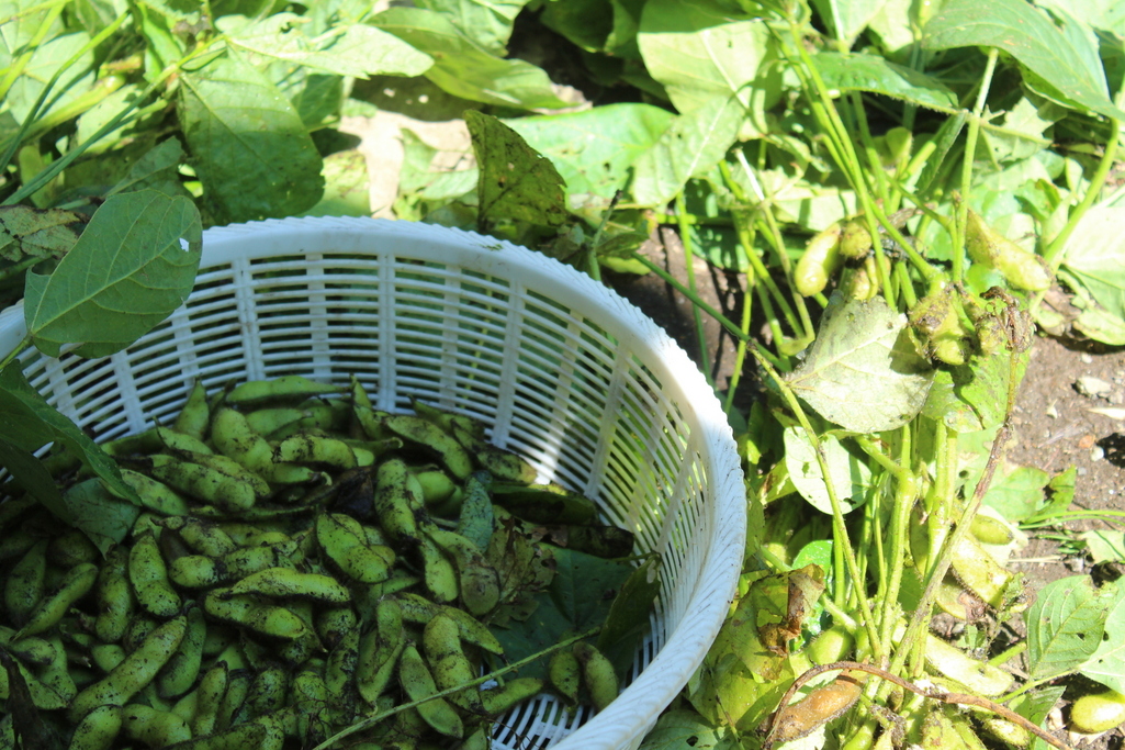 配達の時は枝豆をいつも枝についたまま持っていきました・・親子で一緒にお話ししながら枝豆を取る仕事をしてほしかったから・・グリンピースも・・ソラマメも・・一緒にできる仕事があるって・・いいよね・・