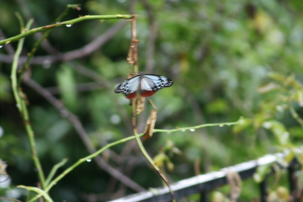 雨の中・庭に嬉しいお客様です!渡りの蝶アサギマダラ(ちょっとピンボケですが)♪