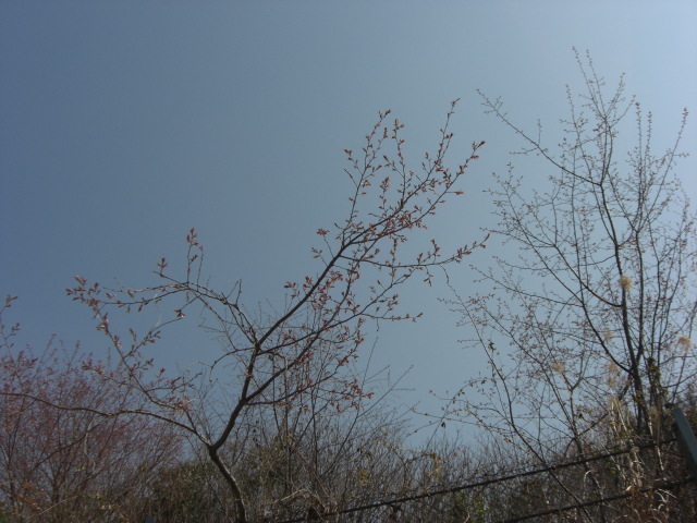 裏の山桜のつぼみが