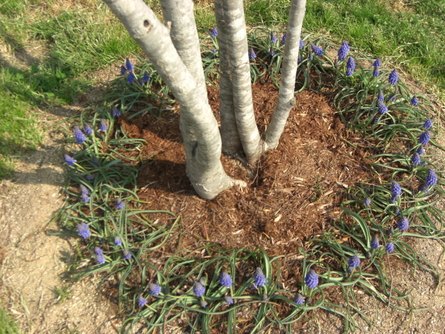 あら~、すてき♪ムスカリのこういう使い方、面白いですね。