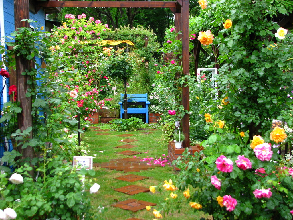 ブルーが効いていてキュートなお庭ですね。心が弾むお写真です^^