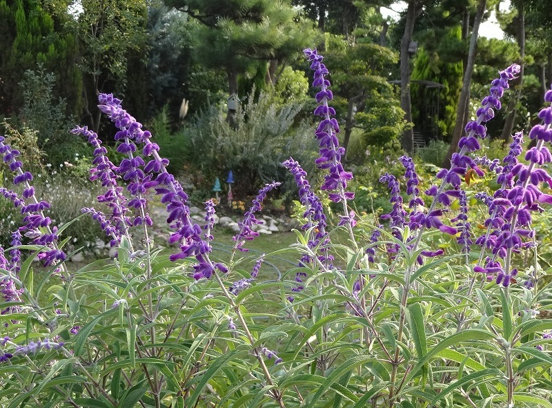 このセージの花色も素敵ですね。葉っぱも綺麗。
