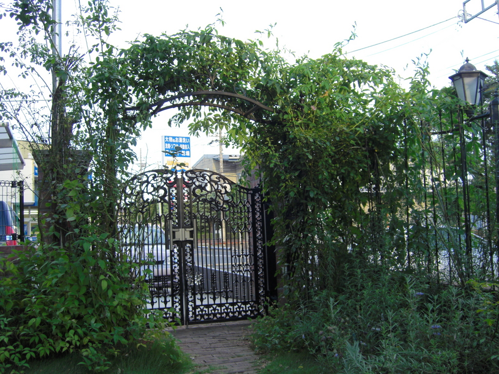 当初、バラのアーチの予定でしたが、樹勢の強いイノセンスのアーチとなりました。