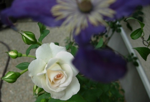 いつも元気なファビュラス!と、紫クレマチス。