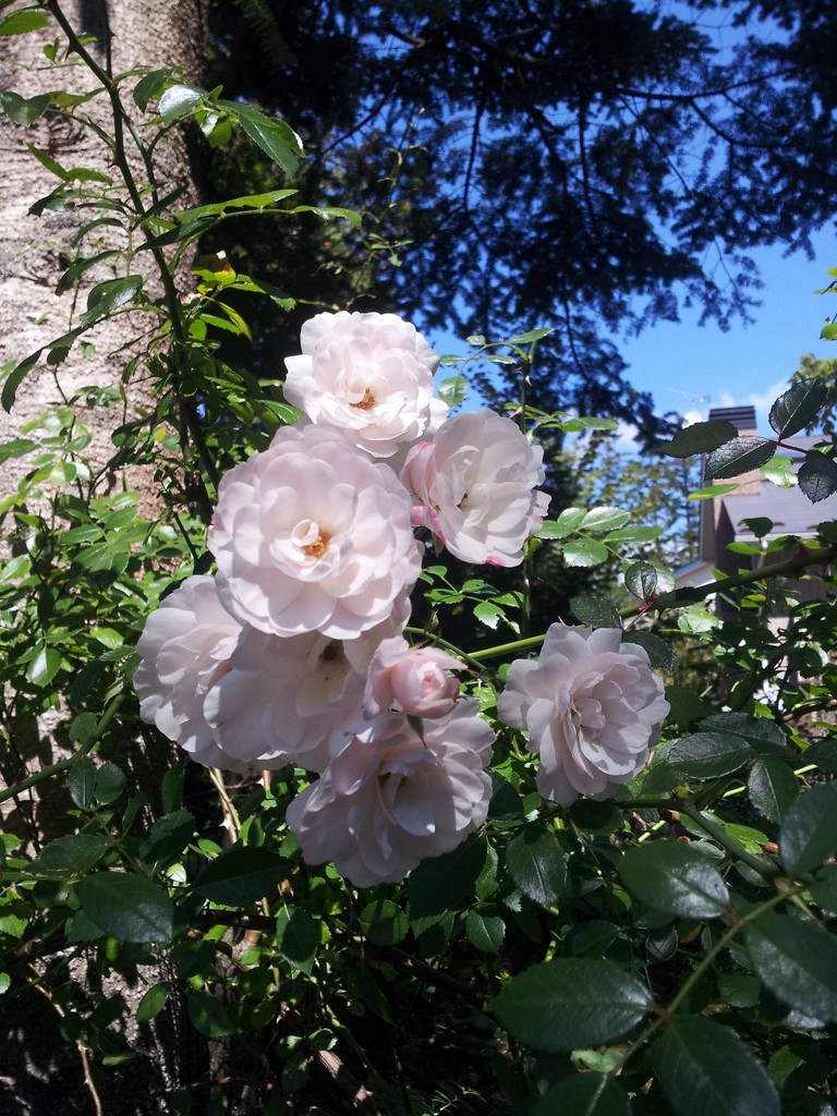 フェンスに絡めたシーホームが淡いピンクの花を咲かせています。
