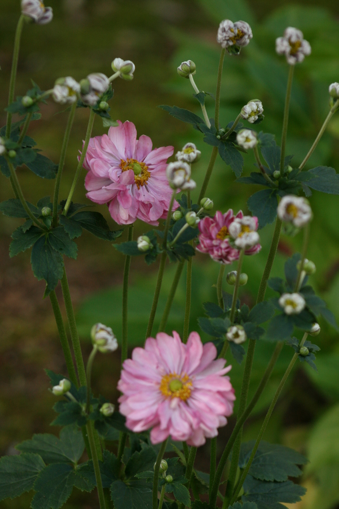 昨年までは白の一重のシュウメイギクだけが咲いていた庭に、今年はこのピンクの八重シュウメイギクもお迎えしました。