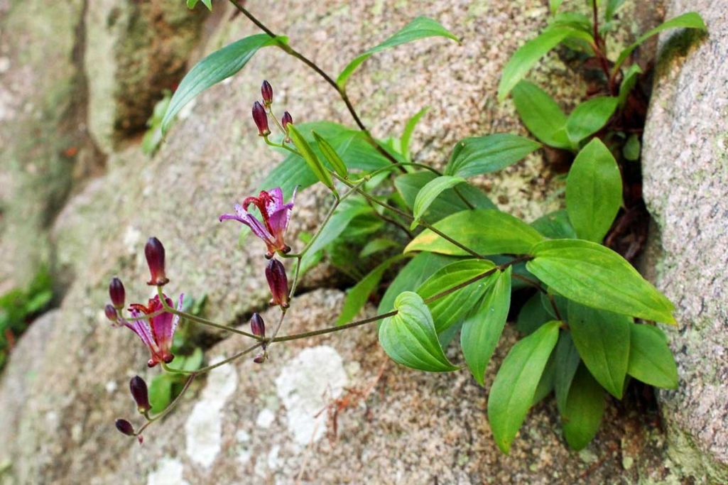 石垣の間から可愛い花を咲かせています・・イギリスではToad Lily (ヒキガエルユリ)といわれているとか・・