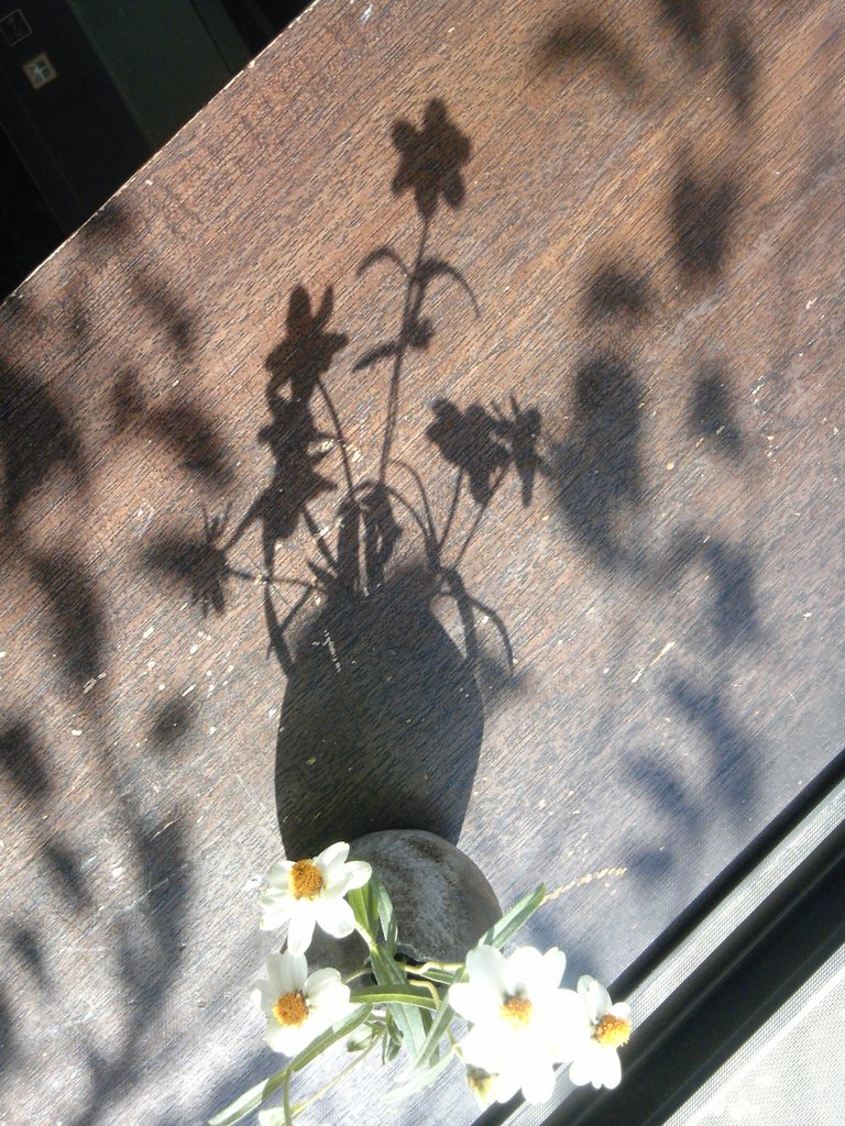 庭の花を花瓶に… 暖かい陽射しの中、花の影も楽しむ
