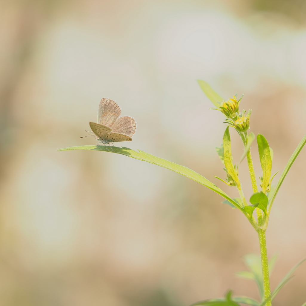 シジミチョウでしょうか。秋のしっとりとした雰囲気の羽の色が溶け込んでいます。