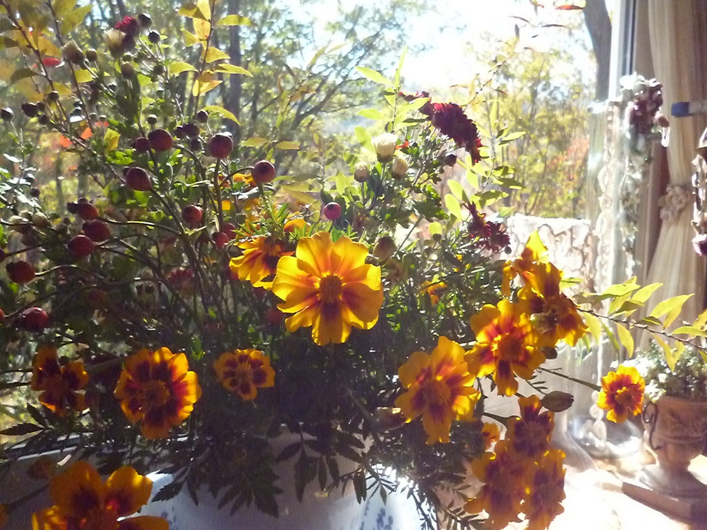 身近な花を使って、部屋に彩を。 我が家の庭も、もうじき冬支度。